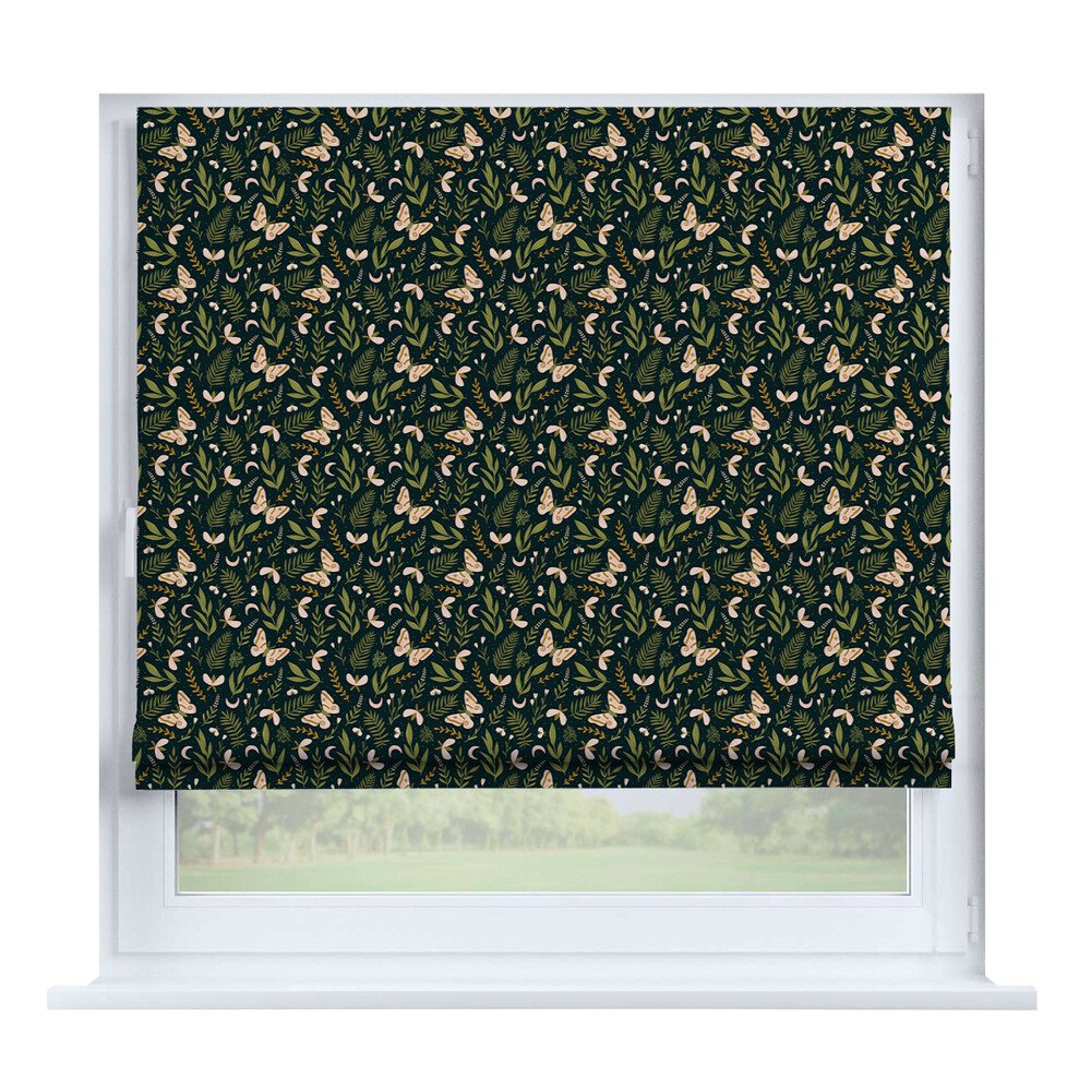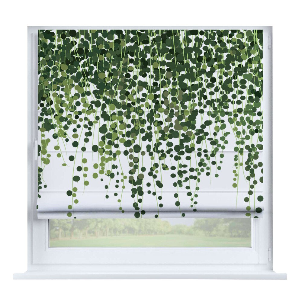 Римская штора для проёма лён димаут тёмно-зелёный, карниз верёвочный